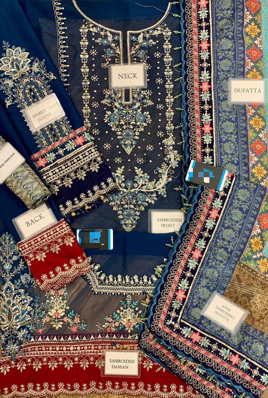 *plain chiffon back with heavy embroidered spengle work back daman boarder*